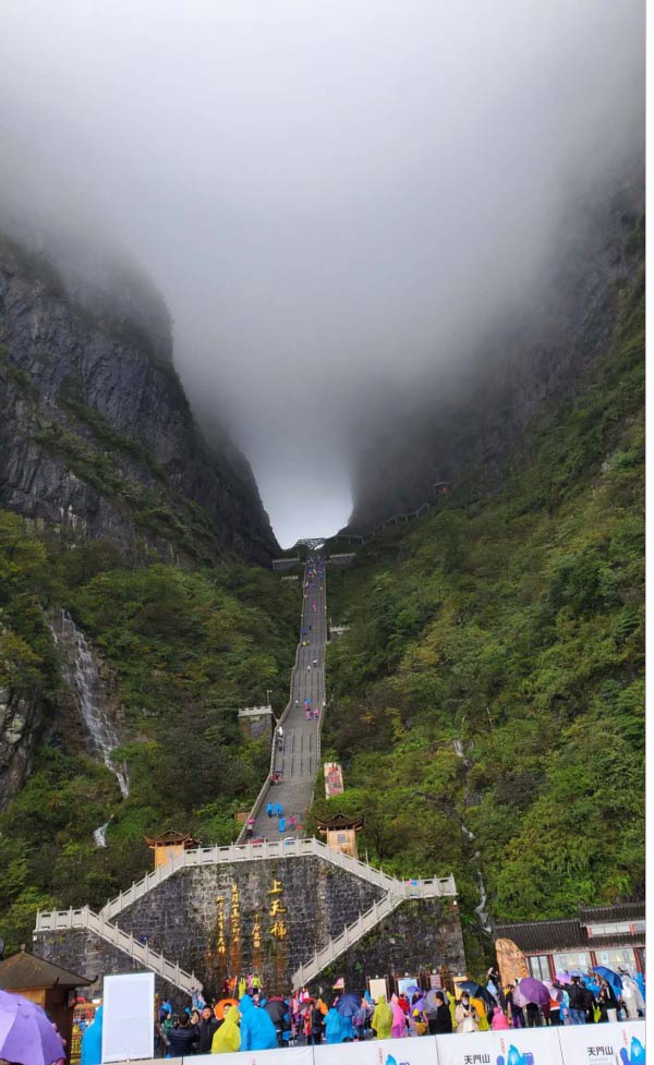 站在洞口,俯視天梯,上面依然在堅(jiān)持努力爬行的人們,大概是懷著一種信仰,相信爬完這999級(jí)臺(tái)階后,會(huì)有長長久久的幸福!