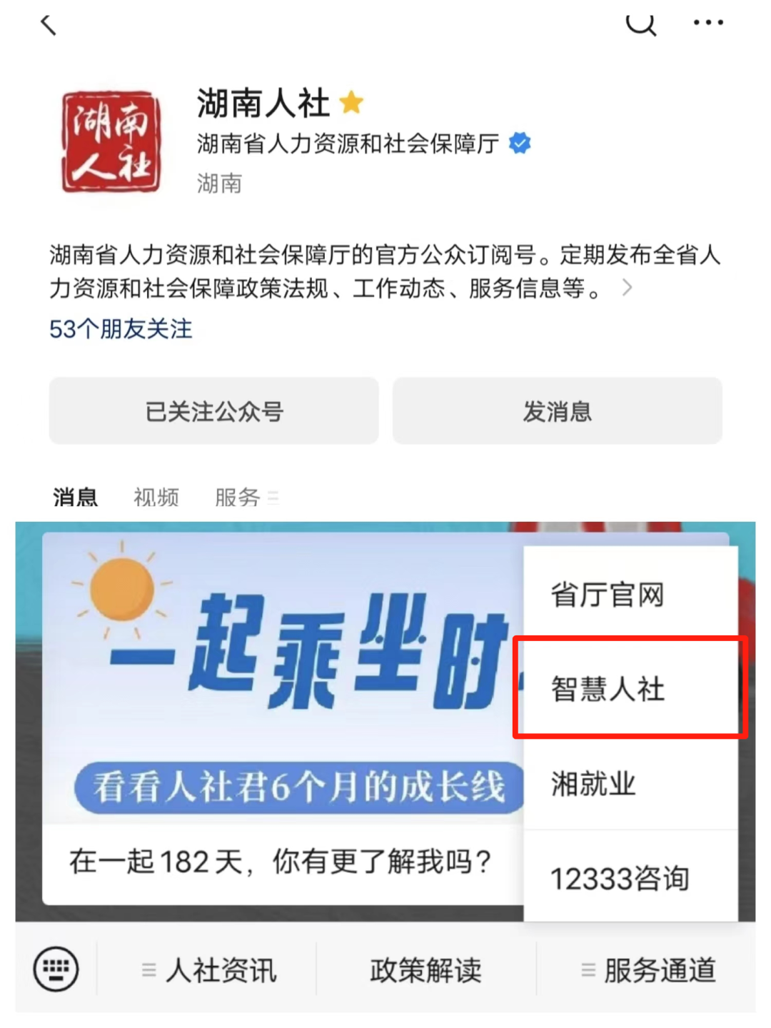 2、關(guān)注“湖南人社”“智慧人社”微信公眾號,點擊【服務(wù)通道】→【智慧人社】→【更多】→【社會保險-失業(yè)保險金申領(lǐng)】→【失業(yè)保險金申領(lǐng)】辦理;